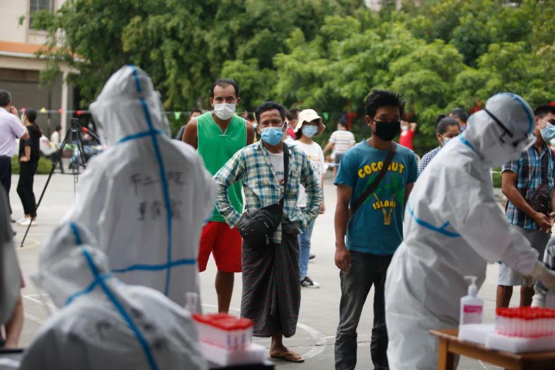 这座边陲城市仍处在防控关口。2020年9月,云南省瑞丽市,几位缅甸籍居民排队等候核酸检测。本刊记者/温如军 马铭泽10月24日,在国务院新冠疫情联防联控新闻发布会的媒体直播间里,大量云南瑞丽网友留言表示希望大家能关注瑞丽的情况。他们说,在当地工厂停工、商业停业、贸易停…