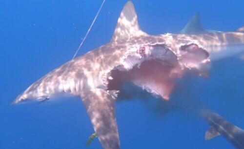 据英国《太阳报》11月24日报道,35岁的Mario Lebrato博士在西班牙海岸的海面下1—2米的地方拍摄到了极其罕见的镜头。当时,Mario Lebrato博士及团队正将一只黑鳍鲨放归大海,在黑鳍鲨回归海洋后不久,竟被另一群鲨鱼攻击,其中包括几条体重在300-400公斤的牛鲨。Mario Lebrato…
