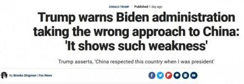 政治算计!特朗普攻击拜登政府“应对中国方式错误”,宣称显得美国“软弱”特朗普又跳出来了。曾经是特朗普最喜欢的媒体的美国福克斯新闻网,9日发布了对特朗普的“独家采访”,给了特朗普又一个批评拜登的机会。特朗普借机宣称,拜登政府采用错误的方式应对中国,显得美国“如…