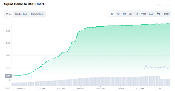 【CNMO新闻】此前因奈飞网剧《鱿鱼游戏》全球大火,包括桠糖、衣服等在内的各种衍生品都获得了不错的销量。不过让人意外的是,一种名为“鱿鱼币”(SQUID)加密货币也受到了许多人的追捧,其价格在过去一周飙升超过2300倍,一度达到2861.80美元,表现十分疯狂。